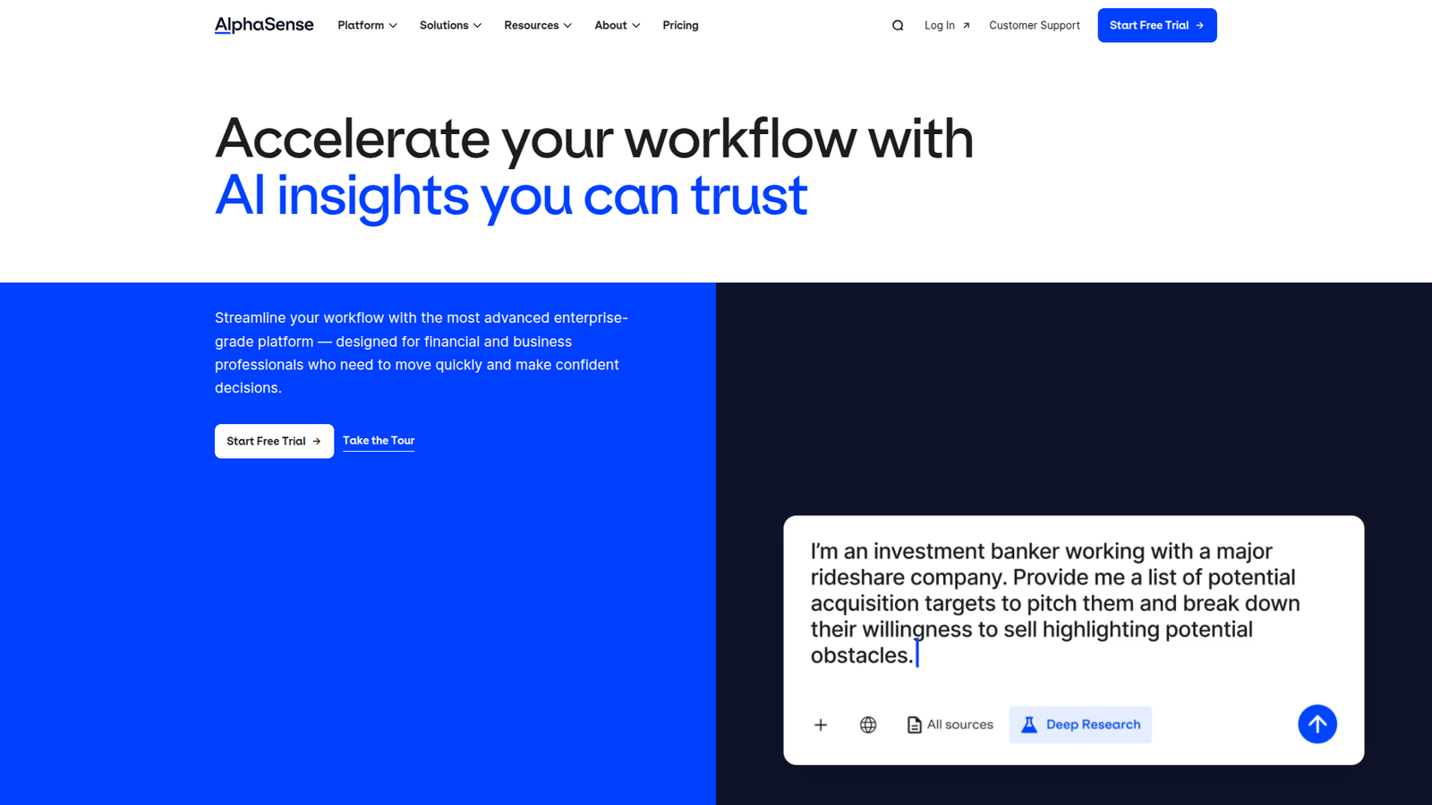If you’re in a professional setting in Finance and Trading and deep research is critical to your success, you need to look at AlphaSense.